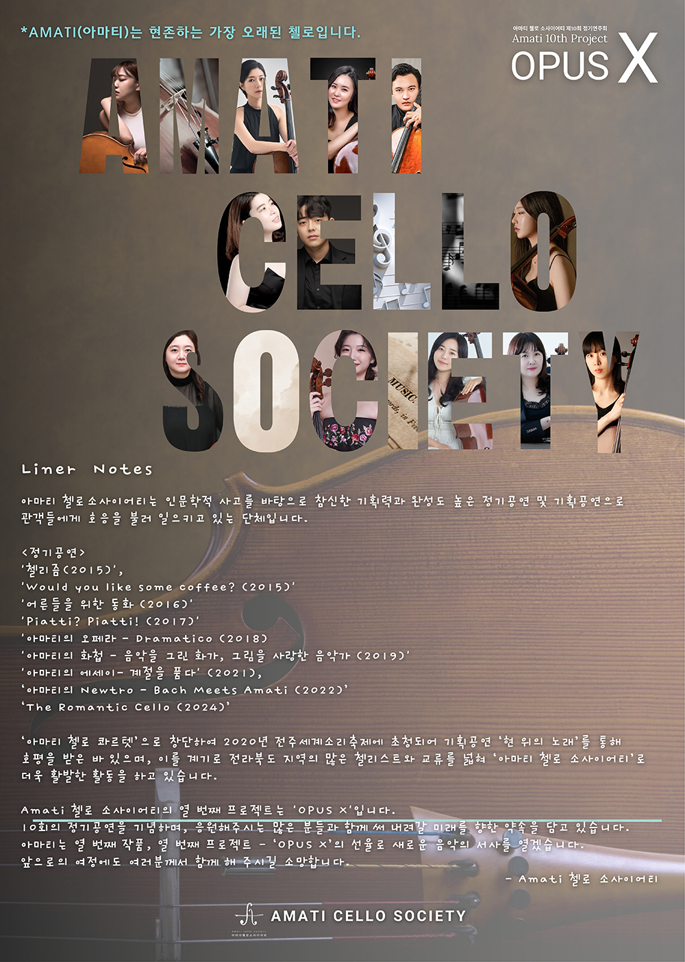 - 공 연 명 : 아마티 첼로 소사이어티 제10회 정기연주회 OPUS X