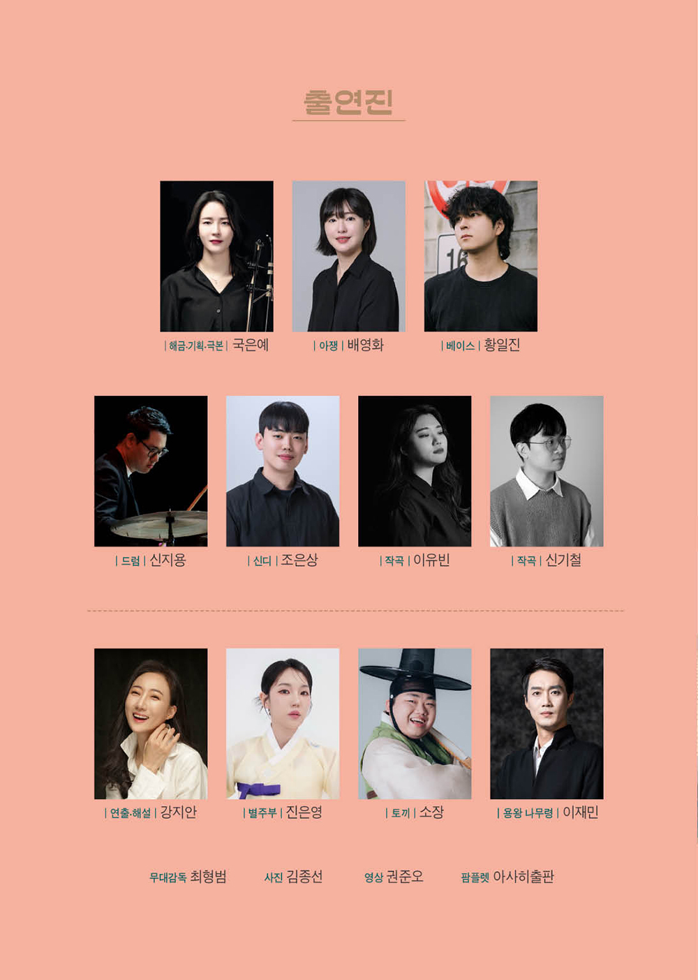 ABOUT PERFORMANCE 공연정보 상세보기 공 연 명 : 별주부와 시간의 섬 공연일시 : 2025년 12월 05일(금) 19:30 공연장소 : 우진문화공간 예술극장 런닝타임 : 50분 티켓금액 : 무료공연 할인정보 : 주최 : 전북특별자치도청 주관 : 국은예에트(etre) 공연문의 : 010-9057-9903 연령제한 : 전 연령 관람가능 예매하기