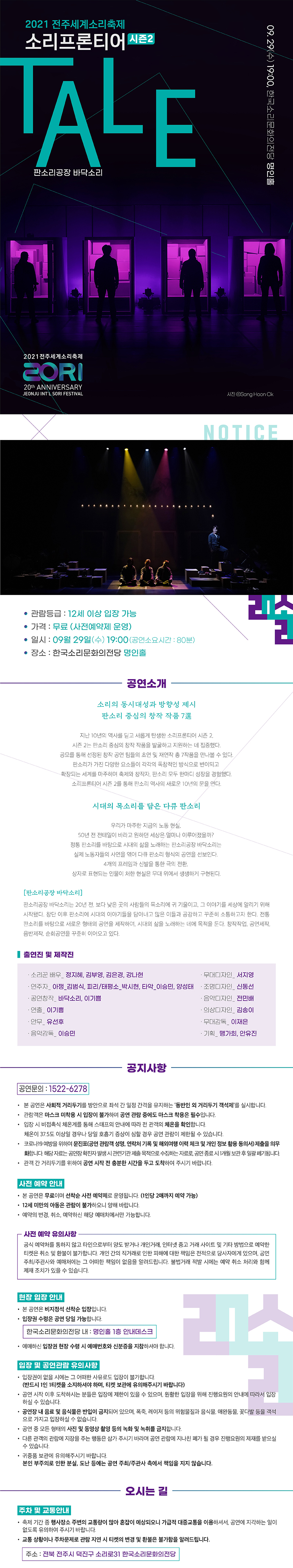 - 공 연 명 : 소리프론티어 시즌2 'TALE'/판소리공장 바닥소리